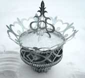 Один из уникальных экземпляров - жестяная труба с шестигранной каскадной воронкой, вся изогнутая, была найдена в груде старого